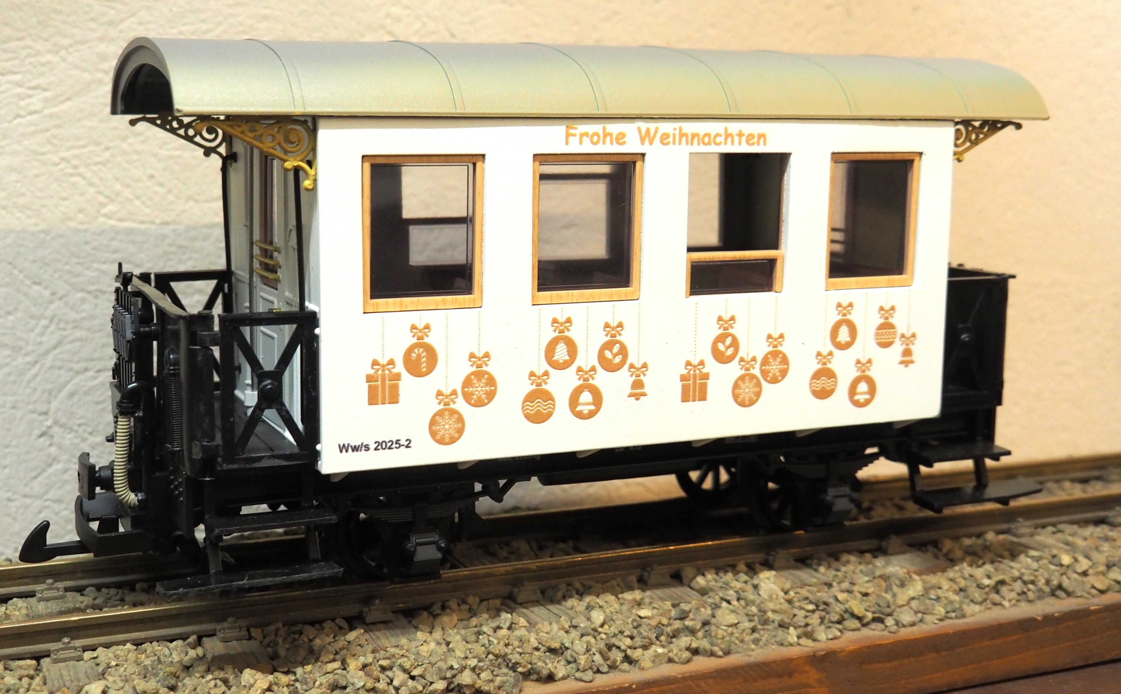 Ich habe mir in den letzten Jahren jedes Jahr einen „Weihnachtswaggon“ gebastelt – jeweils mit der Bezeichnung Ww/s und der Jahreszahl.